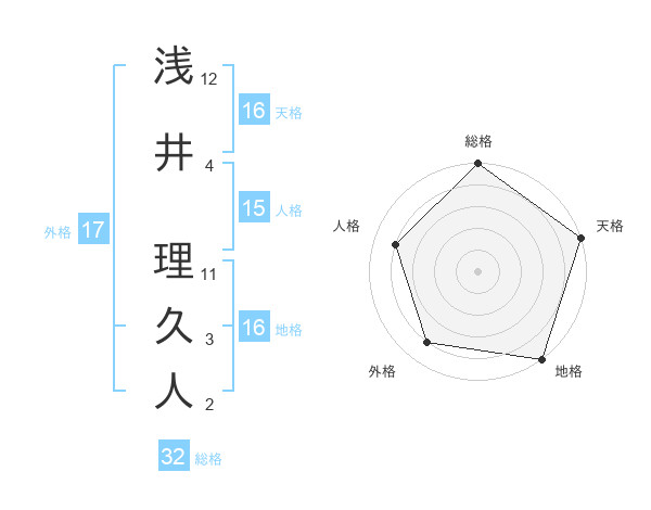 浅井 理久人さんの総格は32画の5点!