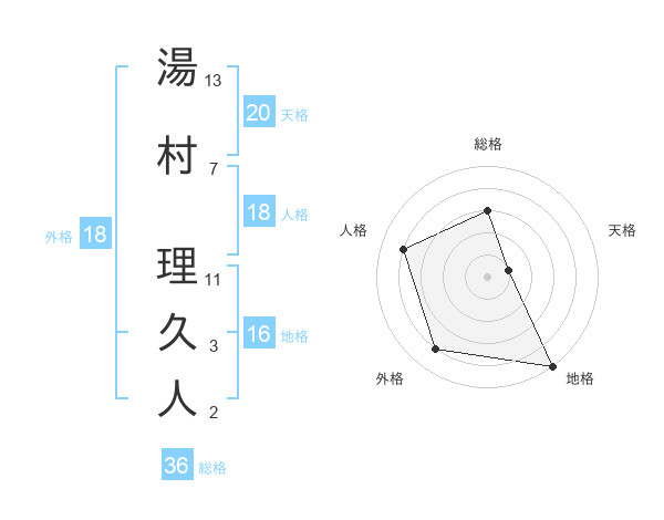 湯村 理久人さんの天格は20画の1点!
