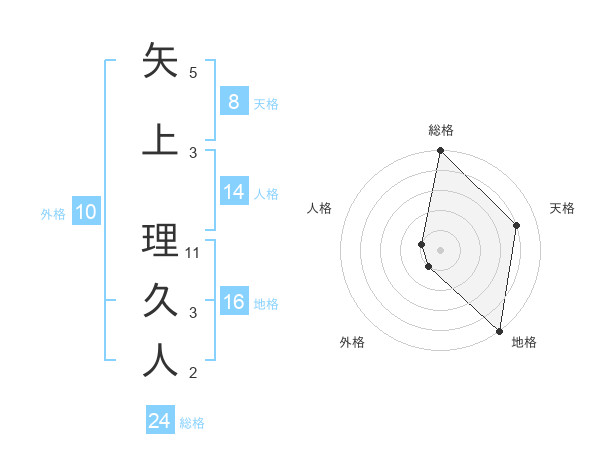 矢上 理久人さんの総格は24画の5点!