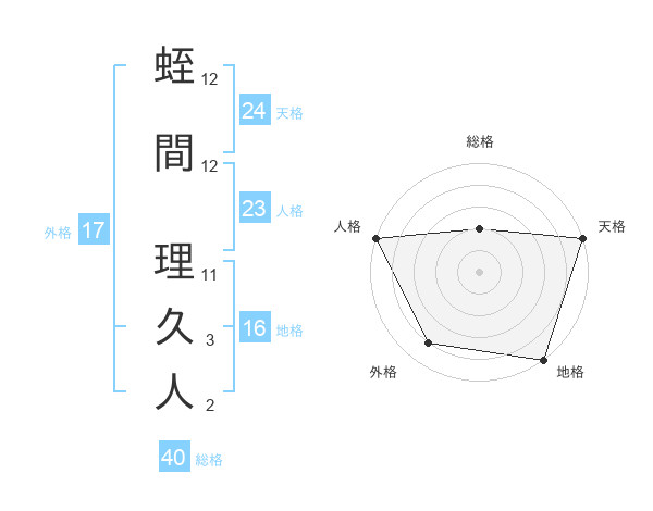 蛭間 理久人さんを姓名の画数から五運を鑑定