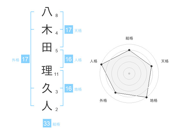 八木田 理久人さんを姓名の画数から五運を鑑定