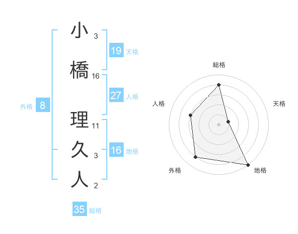 小橋 理久人さんを姓名の画数から五運を鑑定
