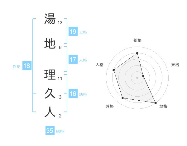 湯地 理久人さんを姓名の画数から五運を鑑定