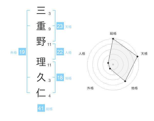 三重野 理久仁さんを姓名の画数から五運を鑑定