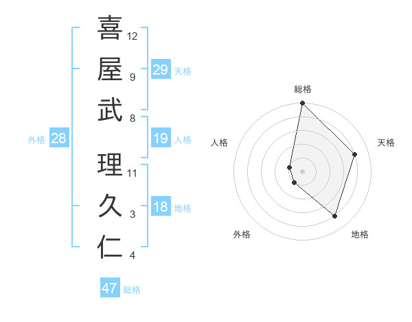 喜屋武 理久仁さんの総格は47画の5点!