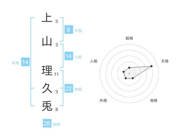 上山 理久兎さんの天格は6画の4点!