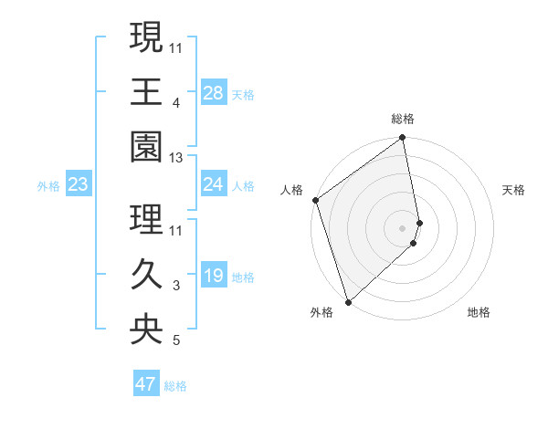 現王園 理久央さんの総格は47画の5点