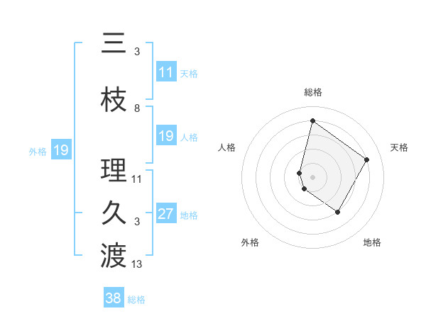 三枝 理久渡さんの総格は38画の4点!