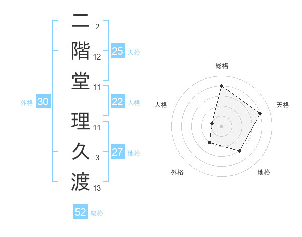 二階堂 理久渡さんを姓名の画数から五運を鑑定