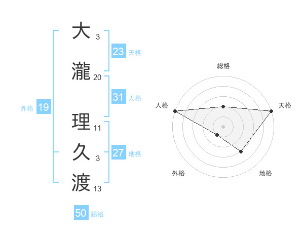 大瀧 理久渡さんの総格は50画の2点!