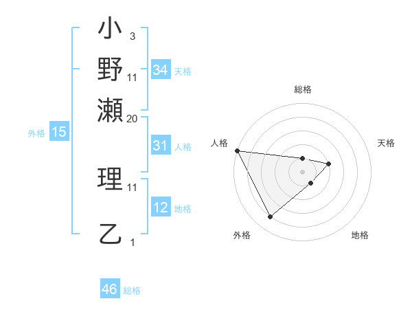 小野瀬 理乙さんを姓名の画数から五運を鑑定