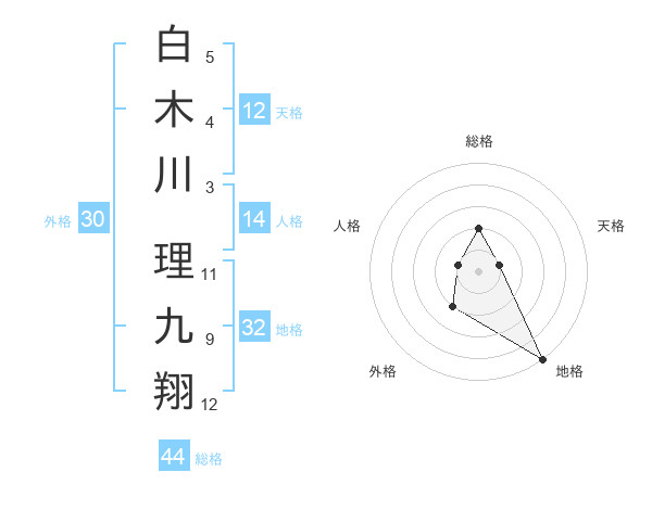 白木川 理九翔さんの総格は44画の2点!