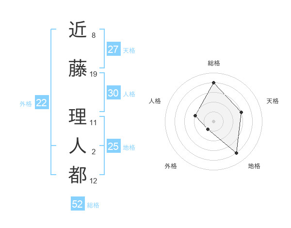 近藤 理人都さんを姓名の画数から五運を鑑定