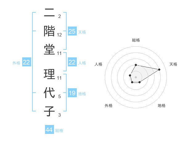 二階堂 理代子さんの外格は22画の1点!