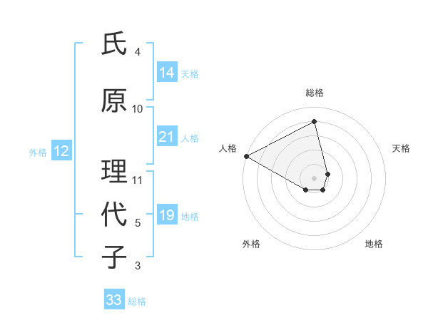 氏原 理代子さんを姓名の画数から五運を鑑定