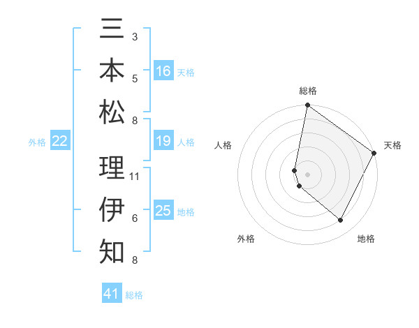 三本松 理伊知さんを姓名の画数から五運を鑑定