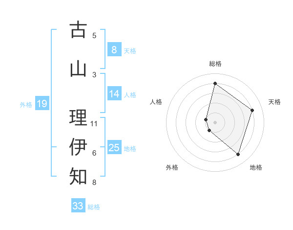 古山 理伊知さんを姓名の画数から五運を鑑定