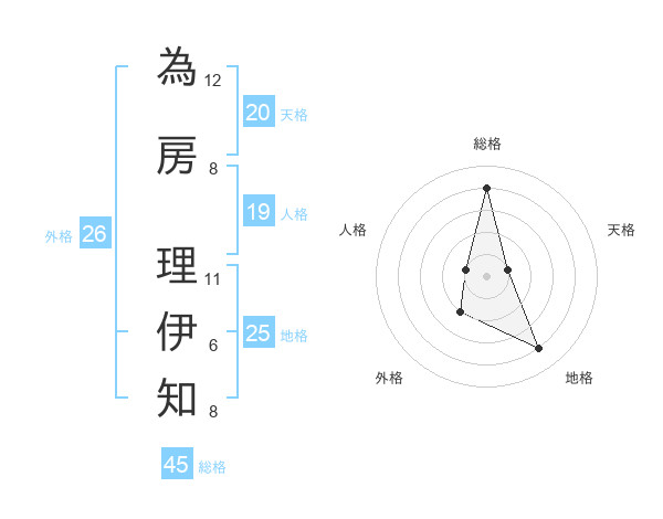 為房 理伊知さんの総格は45画の4点