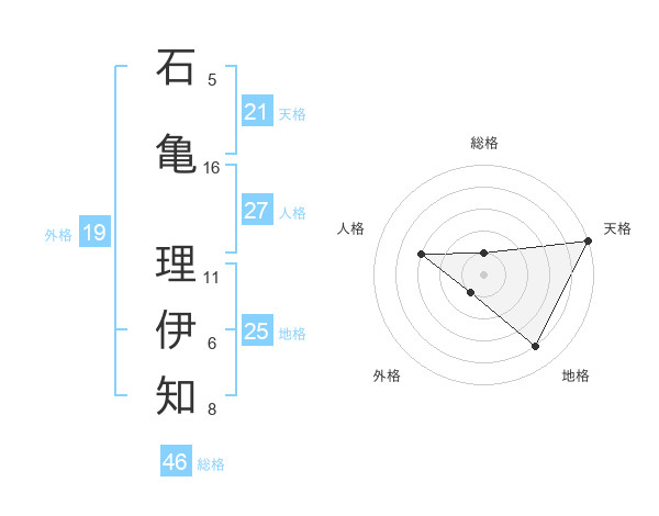 石亀 理伊知さんを姓名の画数から五運を鑑定