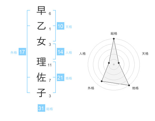 早乙女 理佐子さんを姓名の画数から五運を鑑定