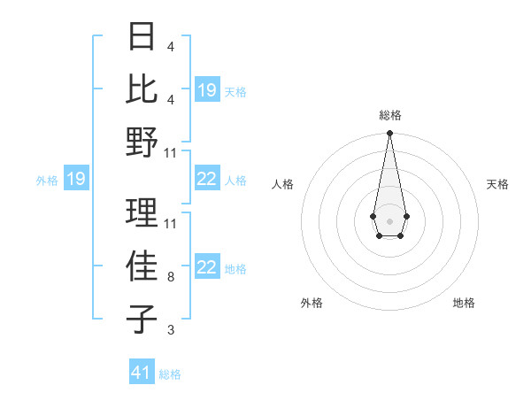 日比野 理佳子さんの総格は41画の5点