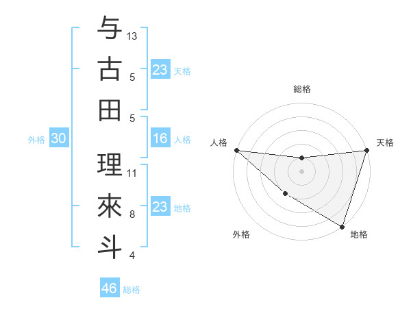 与古田 理來斗さんを姓名の画数から五運を鑑定