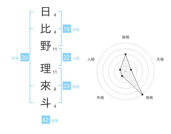 日比野 理來斗さんを姓名の画数から五運を鑑定