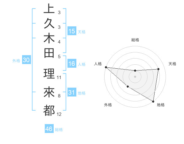 上久木田 理來都さんを姓名の画数から五運を鑑定
