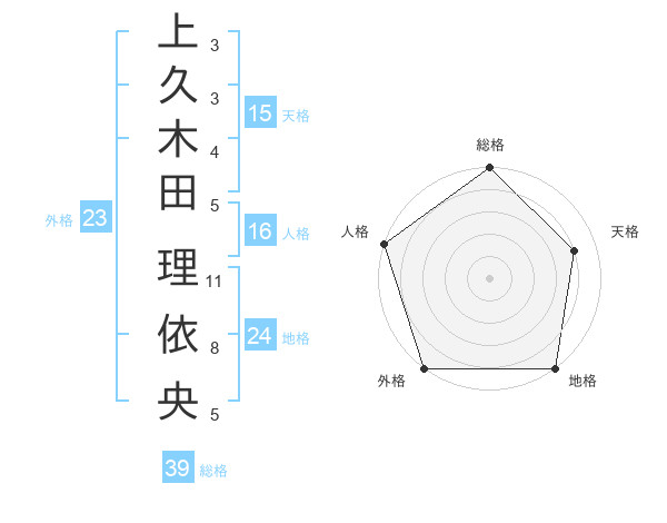 上久木田 理依央さんを姓名の画数から五運を鑑定
