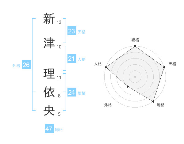 新津 理依央さんの総格は47画の5点!