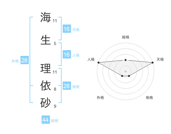 海生 理依砂さんを姓名の画数から五運を鑑定