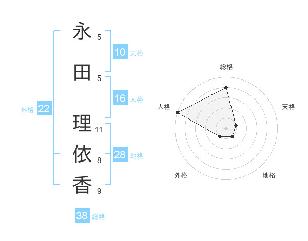 永田 理依香さんの総格は38画の4点