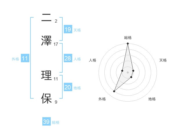 二澤 理保さんの天格は19画の1点!