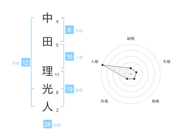 中田 理光人さんの総格は28画の1点!