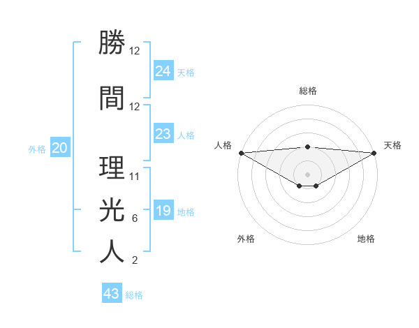 勝間 理光人さんの天格は24画の5点!