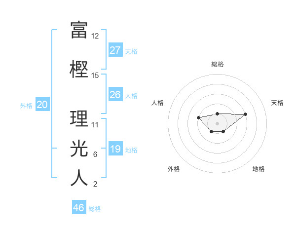 富樫 理光人さんを姓名の画数から五運を鑑定