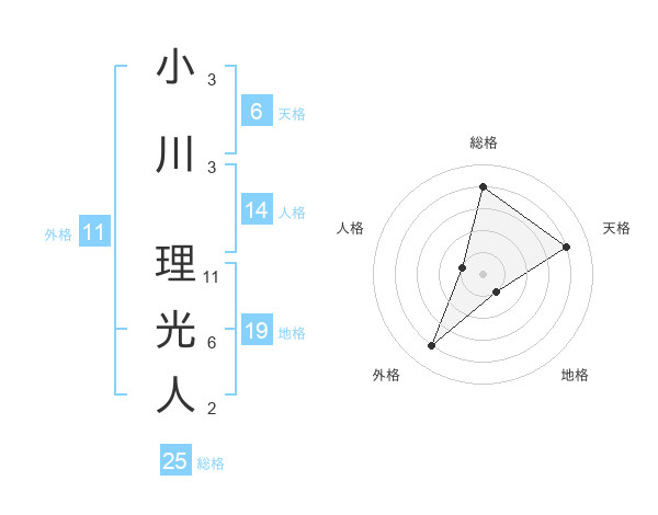 小川 理光人さんの総格は25画の4点!