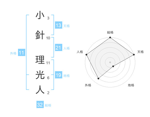 小針 理光人さんの総格は32画の5点!