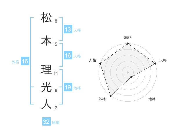 松本 理光人さんの総格は32画の5点!