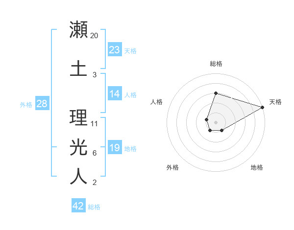 瀬土 理光人さんの天格は23画の5点!