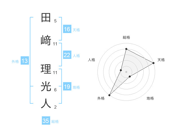 田﨑 理光人さんを姓名の画数から五運を鑑定