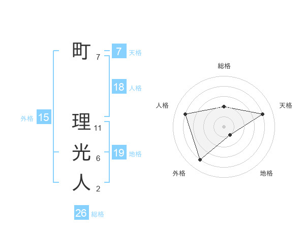 町 理光人さんの総格は26画の2点!