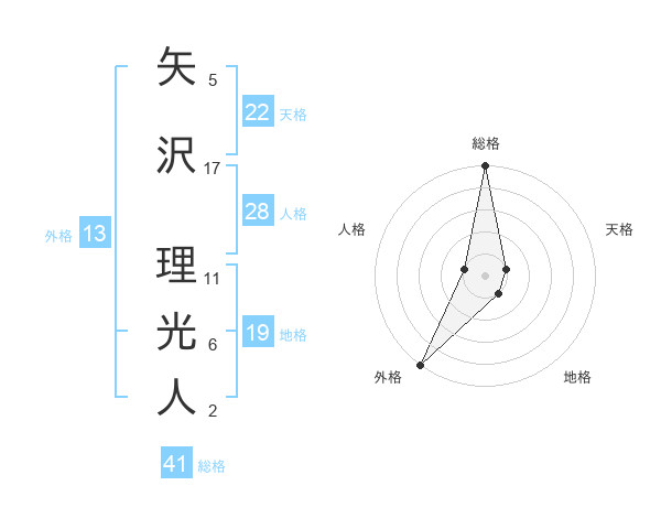 矢沢 理光人さんの外格は13画の5点!