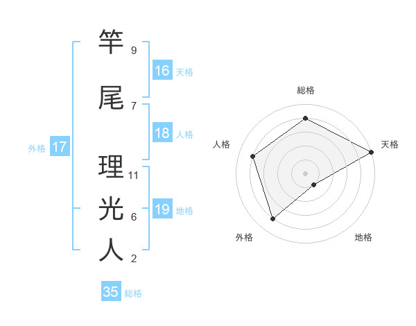 竿尾 理光人さんの総格は35画の4点!