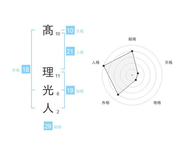 髙 理光人さんの総格は29画の4点!