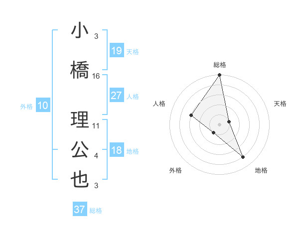 小橋 理公也さんの総格は37画の5点!