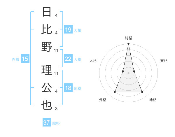 日比野 理公也さんを姓名の画数から五運を鑑定