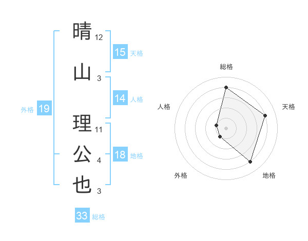 晴山 理公也さんを姓名の画数から五運を鑑定