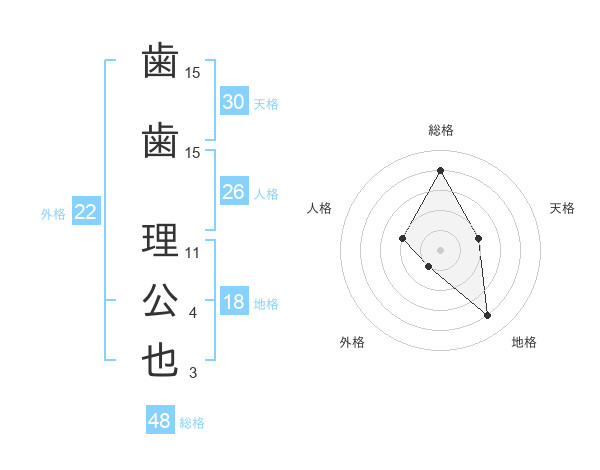 歯歯 理公也さんを姓名の画数から五運を鑑定
