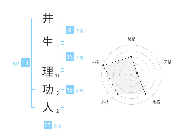 井生 理功人さんの総格は27画の3点!